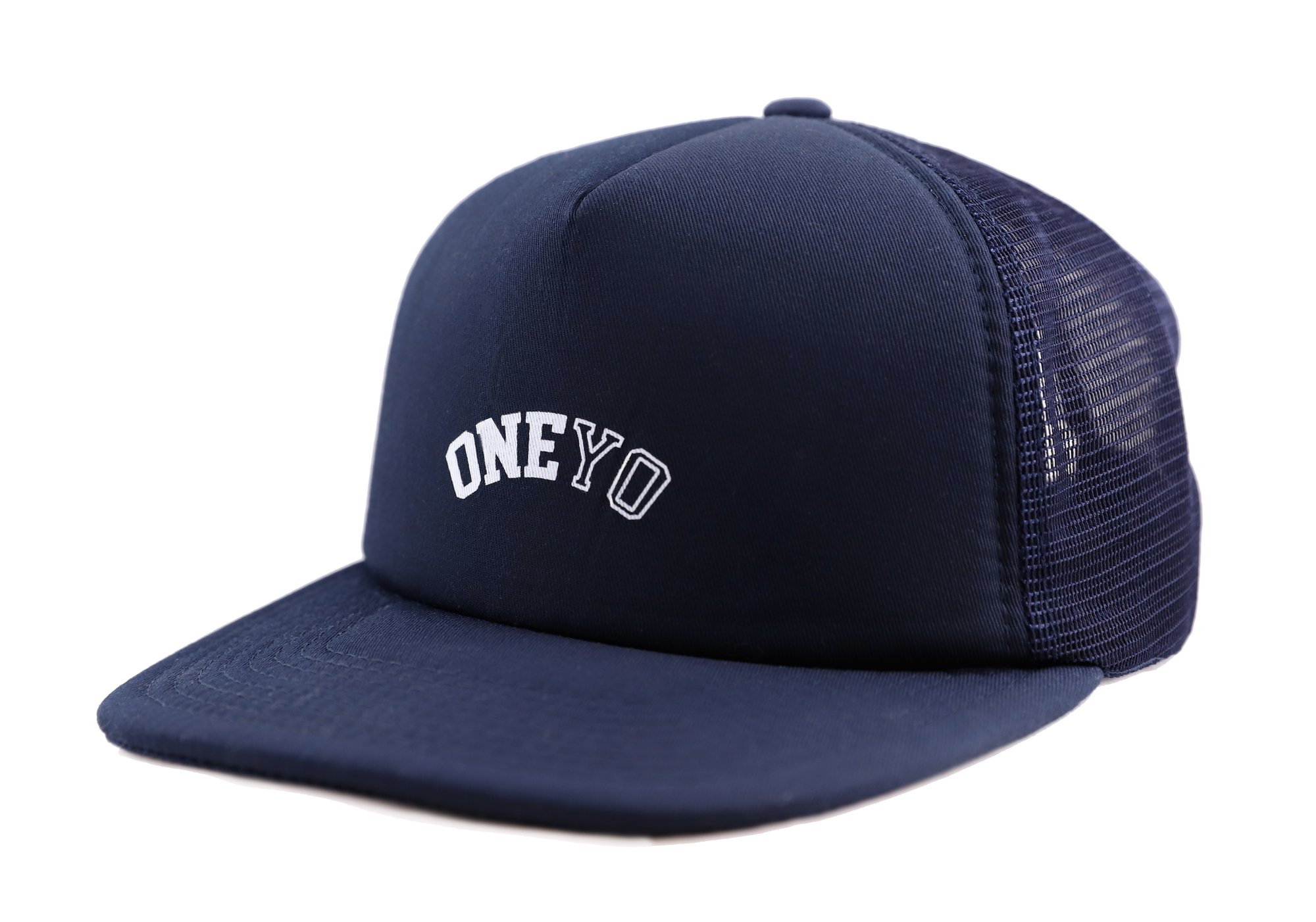 Snapback Navy trucker hat with white print